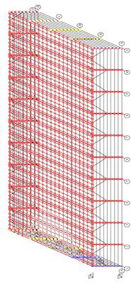 Максимальное горизонтальное перемещение верха здания fult в направлении Х составляет 22.5мм, или 1/267