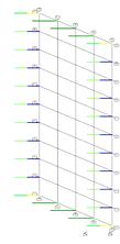 Наименьший коэффициент запаса местной потери устойчивости обнаружен на конечном элементе номер 3887 и равен 13.67 при нулевых перемещениях и углах поворота всех узлов расчетной схемы.