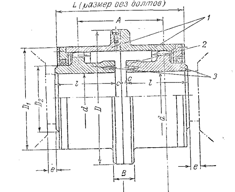 Ориентировочно допустимая величина угла перекоса а =0.5/1.5; осевое и радиальное смещение задаются в зависимости от размеров муфты.