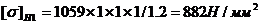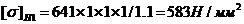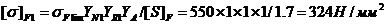 Д) допускаемые напряжения изгиба по формуле: