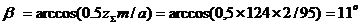 фактический угол наклона зубьев