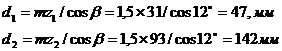 Межосевое расстояние. По формуле уточняем межосевое расстояние