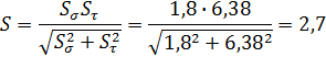 Результирующий коэффициент запаса прочности для сечения Б-Б