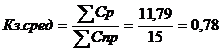 Ср.общ.=Ср1+Ср2+Ср3+Ср4+Ср5+Ср6+Ср7+Ср8+Ср9=0,84+1,3+1,76+2,1+1,46+0,69+1,31+1+0,84=11,79