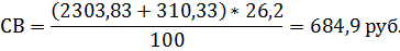 где: %СВ - ставка страховых взносов, % %СВ = 26,2 Расчет страховых взносов (визитки):