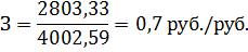 значит, что на один реализованный рубль затрачено средств на 0,7 руб. для