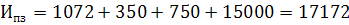 Общая стоимость инструментов равна 1072 рубля. Прочие затраты суммируются