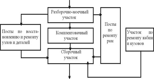Основное производство включает цехи и производственные участки, непосредственно занятые выполнением технологического процесса ремонта автотранспортных средств.