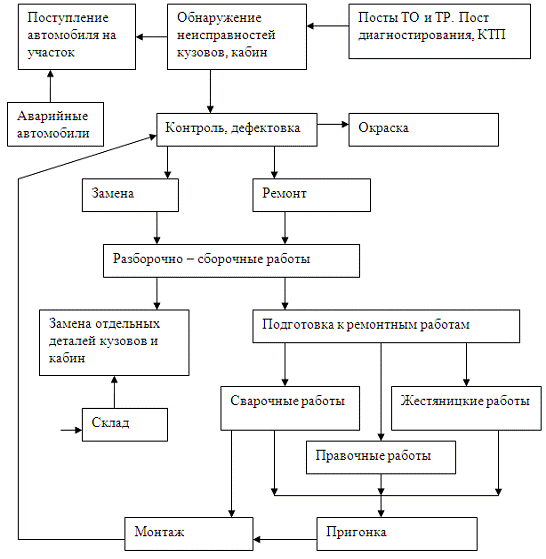 Структура производства кузовного цеха АТП