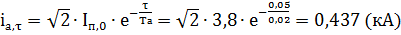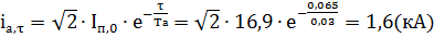 Привод электромагнитный, собственное время отключения выключателя tс.в=0,055 с; расчётное времяτ = tз. min+ tс.в= 0,01+0,055=0,065 с, tз. min = 0,01 с (так как на кабельных и воздушных линиях устанавливается токовая отсечка).