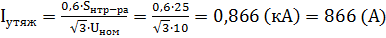 Iутяж ≤ Iном , 866 < 1000 А