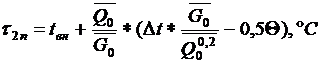 где τ1, τ2 - температуры воды в подающем и обратном трубопроводах тепловой сети, ºС;