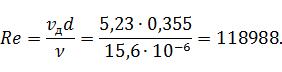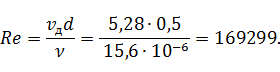 Находим критерий Рейнольдса на данном участке воздуховода: