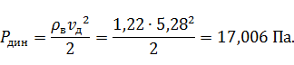 Определяем динамическое давление: