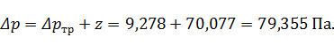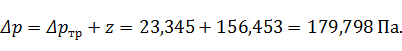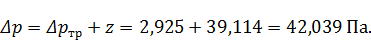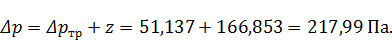 Суммарные потери давления на данном участке: