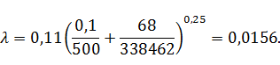 Коэффициент гидравлического трения найдем по