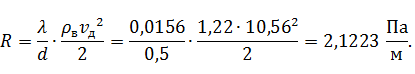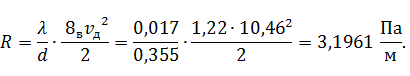 Определяем удельные потери давления на трение: