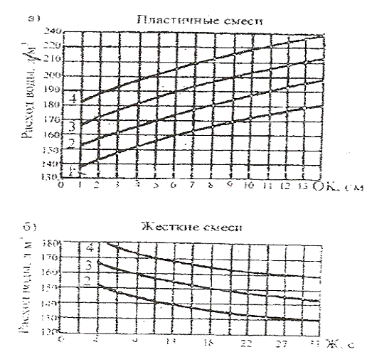 подвижных смесей. Если подвижность смеси получилась меньше требуемой, то в