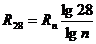 Для тяжелого бетона за базовый принимают образец размером 15×15×15 см. прочность бетона в серии определяют как среднеарифметическое значение прочности двух наибольших по прочности образцов из трех серийных или четырех наибольших по прочности в серии из шести образцов. Если действительная прочность бетона отличается от заданной больше, чем на ±15%, то следует внести коррективы в состав бетона. Если возраст бетона отличается от расчетного 28-суточного, то для обычного портландцемента средних марок в бетоне может быть применена формула:
