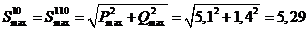 Максимальная полная нагрузка на стороне 110 кВ равна: