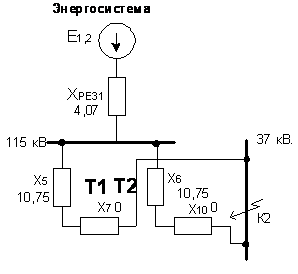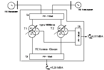 подключения к питающей энергосистеме, величины нагрузок на шинах среднего и