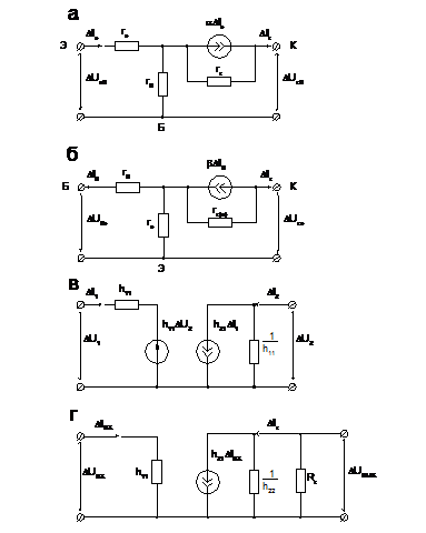 включенных по схеме с общей базой (ОБ) и общим эмиттером (ОЭ) и коэффициенты