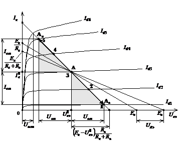 На рис. 3в показано влияние изменения сопротивления нагрузки на положение нагрузочной прямой (Вольтамперной характеристики активного двухполюсника).