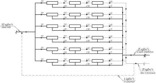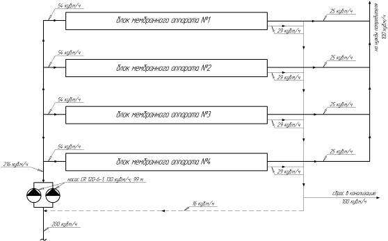 Рисунок 3. Балансовая схема блока мембранного аппарата по
