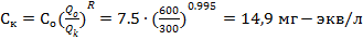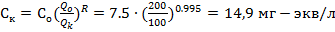 Со - концентрация компонента во входящем потоке воды, мг-экв/л;о - расход входящего потока воды, куб. м/ч;k - расход концентрата, куб. м/ч;- селективность мембранного элемента в долях.