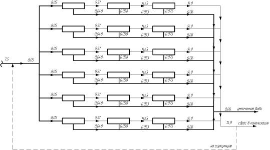 Рисунок 2. Схема водного баланса блока мембранного аппарата