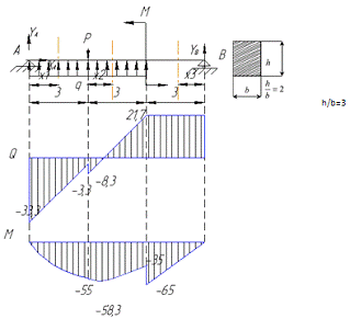 Абсолютная величина максимального изгибающего момента равна 65 кНм. Тогда