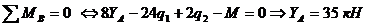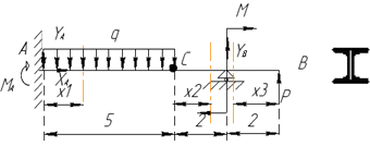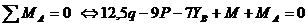 Определим неизвестные реакции опор, используя уравнения равновесия статики.