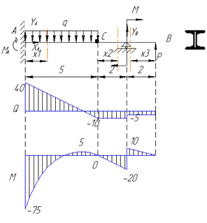 Абсолютная величина максимального изгибающего момента равна 75 кНм. Тогда