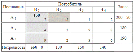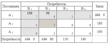 к потребителю B2 (см. таблицу выше). Теперь данный маршрут