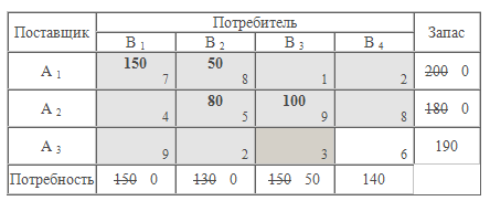 потребителю B3 (см. таблицу выше). Теперь данный маршрут