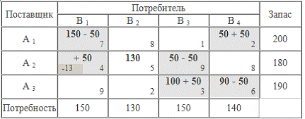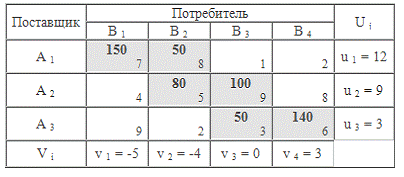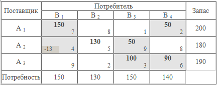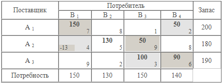 Для задействованного маршрута, сумма потенциала поставщика и потребителя равна тарифу задействованного маршрута.