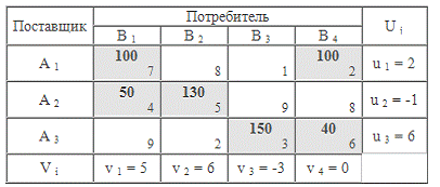 Каждому поставщику A i ставим в соответствие некоторое число - u i , называемое потенциалом поставщика.