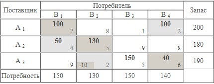 Если оценки всех незадействованных маршрутов неотрицательные, то уменьшить общую стоимость доставки нельзя. Задача решена.