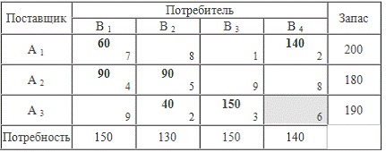 Оценка незадействованного маршрута = тариф маршрута - (потенциал поставщика + потенциал потребителя).