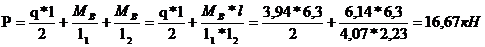 реактивного усилия на средней опоре стропильной ноги: