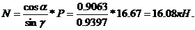 Н= NB*cosб=12,54*0,9063=11,37кН,