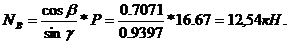 Горизонтальная составляющая усилия NB, равная