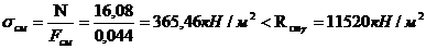 Rсм=15МПа=15000кН/мІ;