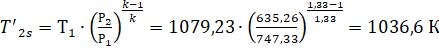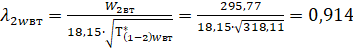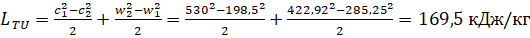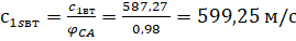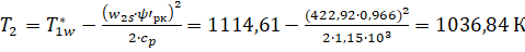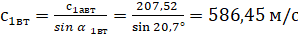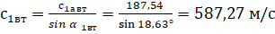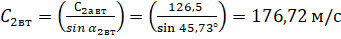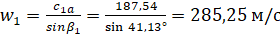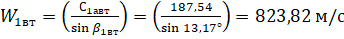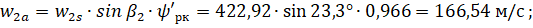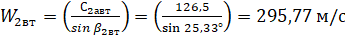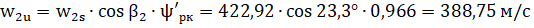 скорости истечения газа из рабочего колеса в относительном движении вычисляем