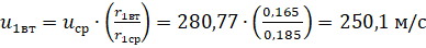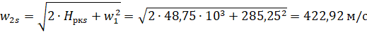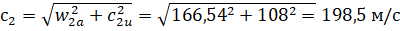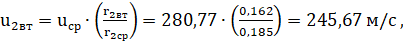 скорости на выходе из рабочего колеса вычисляем по формулам: