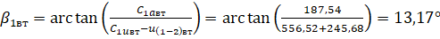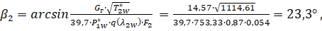 Определяем угол отставания потока в косом срезе рабочего венца, используя номограмму [2]: