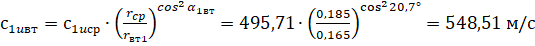 истечения газа из рабочего колеса в относительном движении вычисляем по