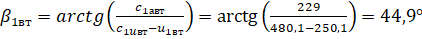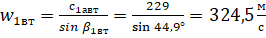 по закону постоянства угла абсолютной скорости строим треугольники скоростей