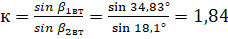Определяем угол отставания потока в косом срезе рабочего венца, используя номограмму [2]: