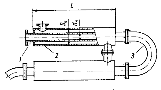 теплообменная труба; 2 - кожуховая труба; 3 - калач)